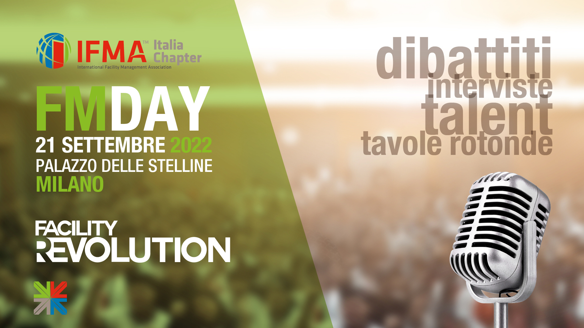 L’appuntamento cardine per il settore del Facility torna alla sua forma più classica: una singola giornata di lavori, esclusivamente in presenza, nella storica cornice del Palazzo delle Stelline di Milano. L’omaggio alla tradizione però termina qua. L’FM Day 2022 si presenterà al suo pubblico con una formula rivoluzionata, fondata su nuovi format studiati per rendere ancor più incisive le testimonianze dei relatori e amplificare al massimo il coinvolgimento del pubblico. A restare costante saranno la qualità dei contenuti e le opportunità di incontro e confronto tra domanda e offerta di servizi che caratterizzano tutte le iniziative di IFMA Italia.